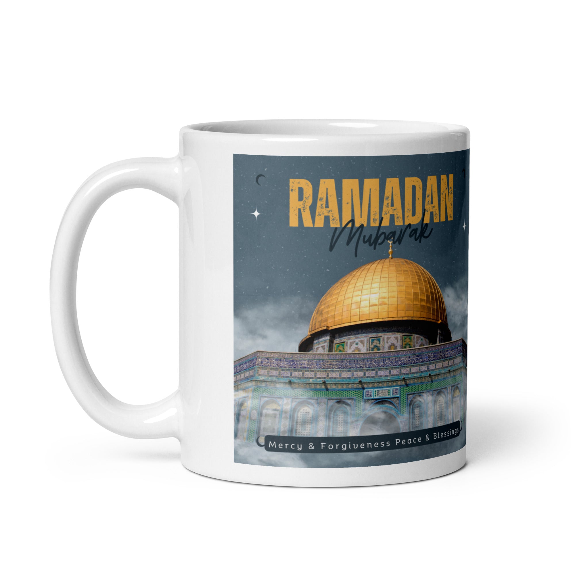 Ramadan Mubarak White Glossy Mug Jerusalem